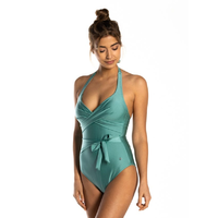 Sage halter badpak met overslag. Heeft een corrigerend effect. Het badpak heeft een ingebouwd topje met een uitneembare padding voor een comfortabele fit.