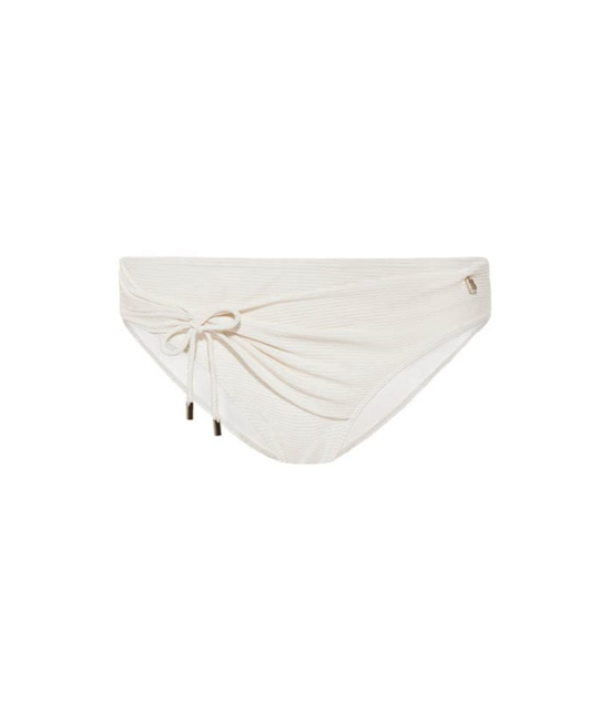 Whisper White bikinibroekje met plooidetail en bedekte fit. Het broekje valt hoger op de heupen. Door middel van een strikje aan de voorkant wordt er een leuk plooieffect gecreëerd.