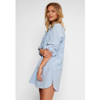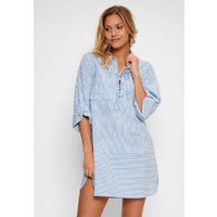 Deze Bossa tuniek is blauw/wit gestreept. De tuniek heeft een speelse vetersluiting.