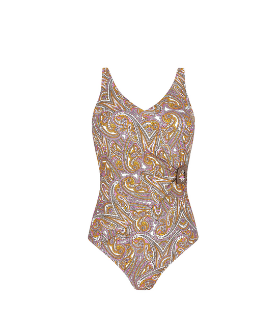 - Care badpak - Zonder beugel - Met ingenaaide hoesjes - Met lichte vulling voor een mooiere, ronde borst - V-rug - Drappage op de buik en taille