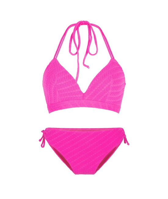 - Plunge decolleté - Met beugel - Met vulling - De halterneck bikini sluit doormiddel van een clip op de rug - Striksluiting in de nek.