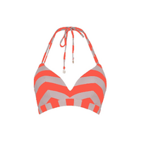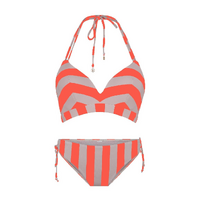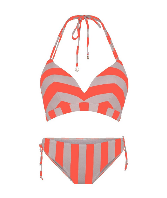 - Halter bikini - Met beugel - Met vulling - Dubbel koord in de hals - Kleur taupe met koraal