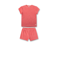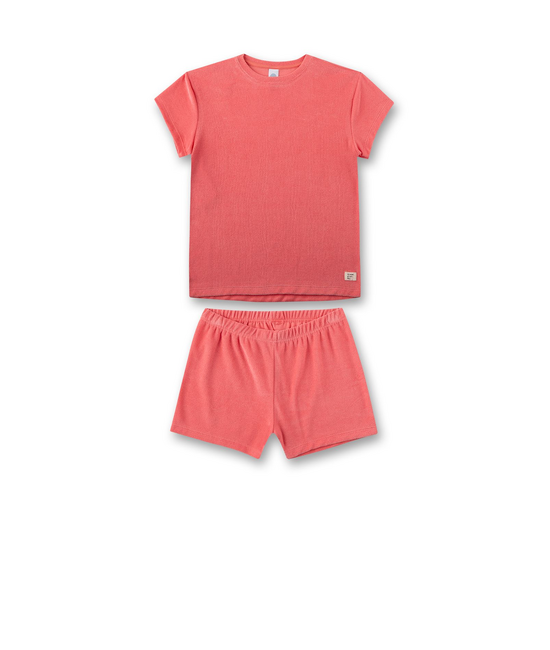 - Korte meisjespyjama in roze - Knuffelzachte badstof - Aangenaam draagcomfort - T-shirt met ronde hals - Korte broek van badstof - Elastische tailleband