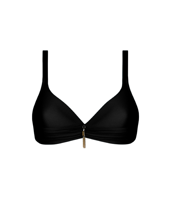 - Plunge bikini top - Met vulling - Zonder beugel - Diep decolleté - Bandjes multipositioneerbaar en verstelbaar - Drappage stukjes vooraan op de cup.