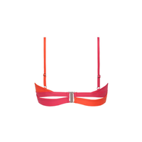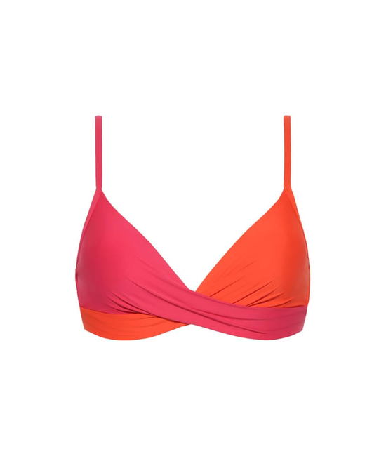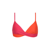 Bright Rose twist bikinitop met voorgevormde cups en beugel. De top heeft verstelbare schouderbandjes en een metalen sluitclip op de rug.