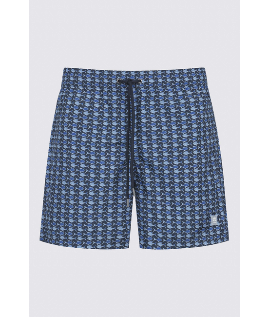 - Losse zwemshort - Korte pijpen - Stretch tailleband met trekkoord - Achterzak - Steekzakken opzij - Met binnenbroek - Kleurvast - Print met vissen - Chloor-, zweet- en zeewaterbestendig