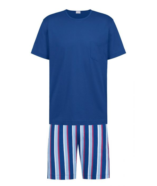 - Pyjamaset heren - Comfortabele pasvorm - Ronde halslijn - Korte mouwen - Kort broekje met strepen - Comfortabele tailleband