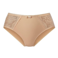 - Hoge slip - Niet transparant voor- en achteraan - Katoenen kruisje - Afgewerkt met transparante kant - Afgeboord met elastiek