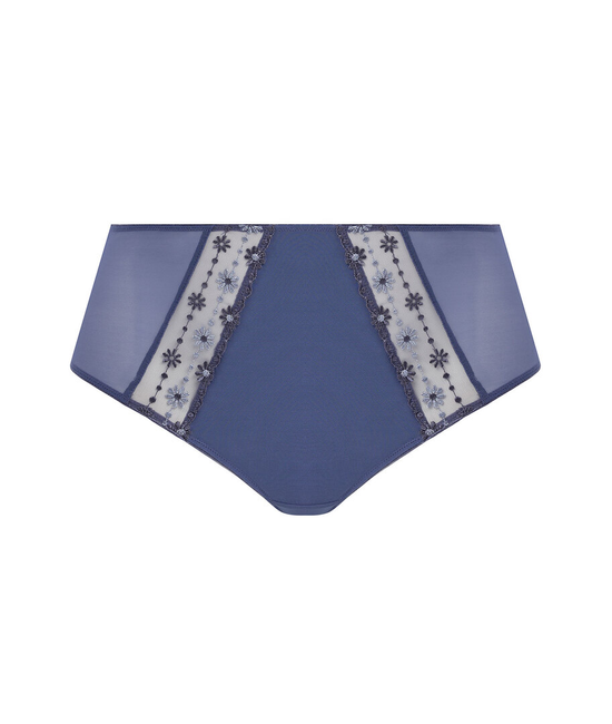 - Hoge tailleslip - Geborduurde madeliefjes - Voorzijde van gladde stof - Achterzijde doorzichtig - Kruisje met katoen gevoerd