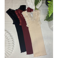 - Thermisch onderhemdje zonder mouw - Angorawol en zijde - Afgewerkt met kantpatroon