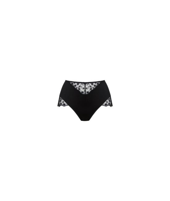 - Hoge slip - Kanten detail op de tailleband en benen - Platte, elastische zoom op been- en tailleband - Dichte stof op de billen