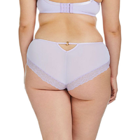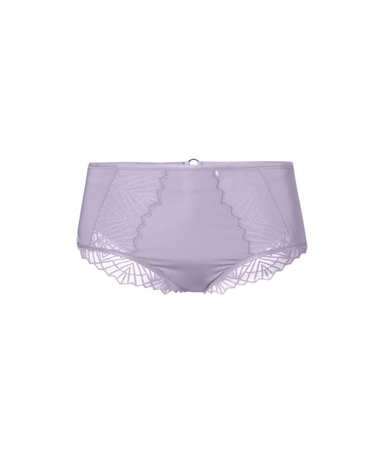 Het model valt wat hoger op de heupen. De slip is aan de voorkant deels transparant en heeft kanten details. Het achterpand is versierd met een kanten band en is blikdicht. De stof heeft een kleine driehoekige opening op de rugzijde. Op de heupband zit een kleine sierring.