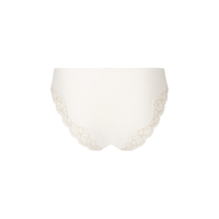 - Slip met normale hoogte - Uitgesneden vooraan - Onthult de bil en bedekt gedeeltelijk met kant