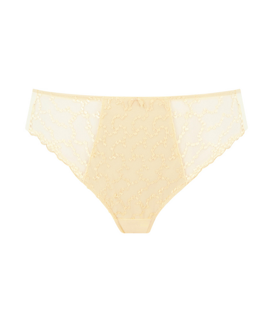 - Slip normale hoogte - Niet transparant - Kant voorraan en gladde stof achteraan - Kruisje met katoen gevoerd - Platte, gelazerde naden - Geen doorschijnen van de naad op de billen
