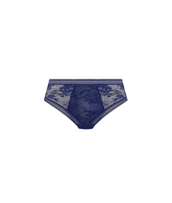 - Slip normale hoogte - Semi-transparante kant op de heupen - Gesloten stof op de billen - Gevoerd met katoenen kruisje