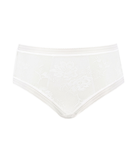 - Slip normale hoogte - Semi-transparante kant op de heupen - Gesloten stof op de billen - Gevoerd met katoenen kruisje