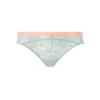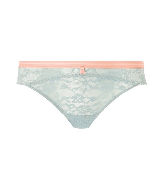 Gemaakt van zachte stretchkant voor een extra comfortabel gevoel. Voorzien van contrastgrijze details en een lintje met een zilveren drukknoopbedel. De slip is niet blikdicht, maar heeft een gevoerd kruisje uit katoen.