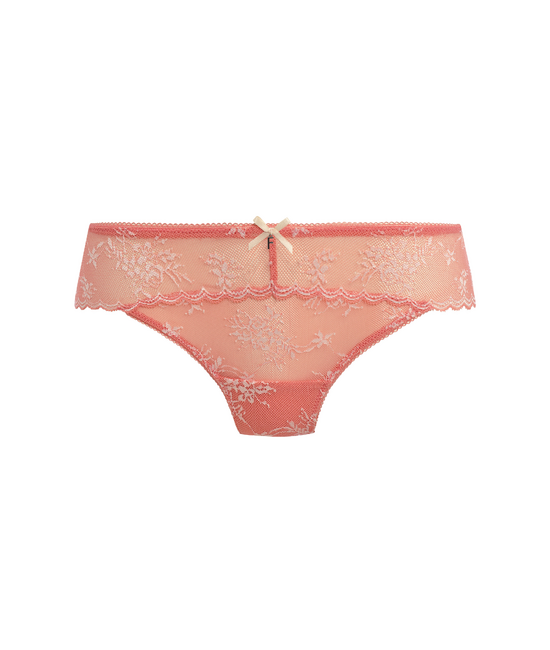- Slip normale hoogte - Transparant voor-en achteraan - Omzoomde boord op de billen - Gevoerd met katoenen kruisje