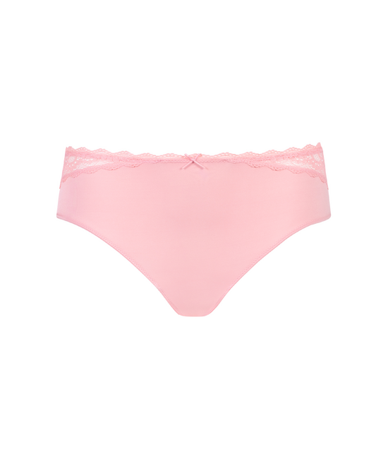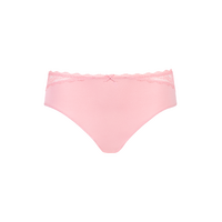 - Slip normale hoogte - Platte zoom op het been - Zachte tailleband - Katoenen kruisje - Kant aan voorzijde - Dichte stof op de billen