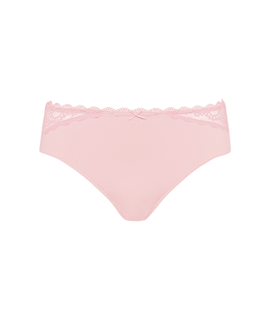 - Slip normale hoogte - Platte zoom op het been - Zachte tailleband - Katoenen kruisje - Kant aan voorzijde - Dichte stof op de billen