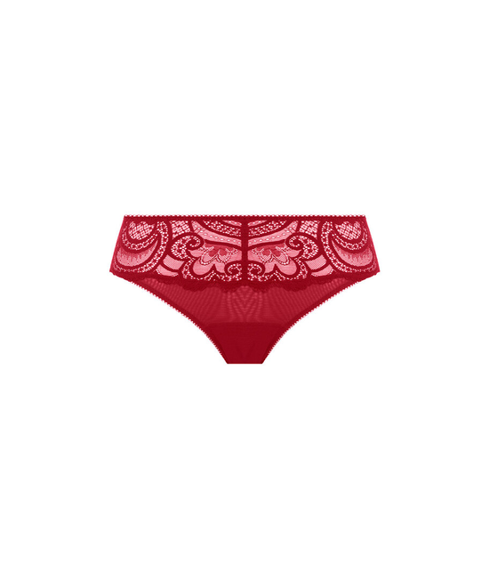 - Slip normale hoogte - Transparant voor-en achteraan - Gelazerde, kanten boord op de billen - Gevoerd met katoenen kruisje