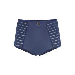 String uit de nieuwe basiscollectie van Sapph. De string is opzij doorzichtig gestreept. Vooraan is de string blikdicht.