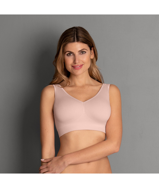 Trendy feel-good design voor dagelijks gebruik: de naadloze prothese-crop top combineert een charmante comfort-look met functionele details. Het microvezelmateriaal ligt bijna onmerkbaar tegen de huid en volgt elke ronding van je lichaam. De uitneembare foam pads in de cups zorgen voor een natuurlijke vorm en bieden comfortabele ondersteuning. De BH heeft brede, zachte schouderbanden en een soepele omtrek-rand.