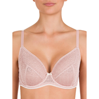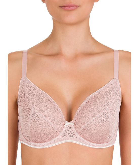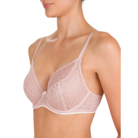 De nieuwe fashion-serie Santorini van Conturelle. 3/4 de beugel- BH met elastische kant in een grafisch-abstract design en discreet contrasterende biezen. Ze voelt aan als een ‘vleugje niets’, terwijl de tule een stabiele steun garandeert. Deze BH heeft een vrouwelijk decolleté en variabele bandjes die desgewenst als neckholder of kruisgewijs kunnen worden gedragen.