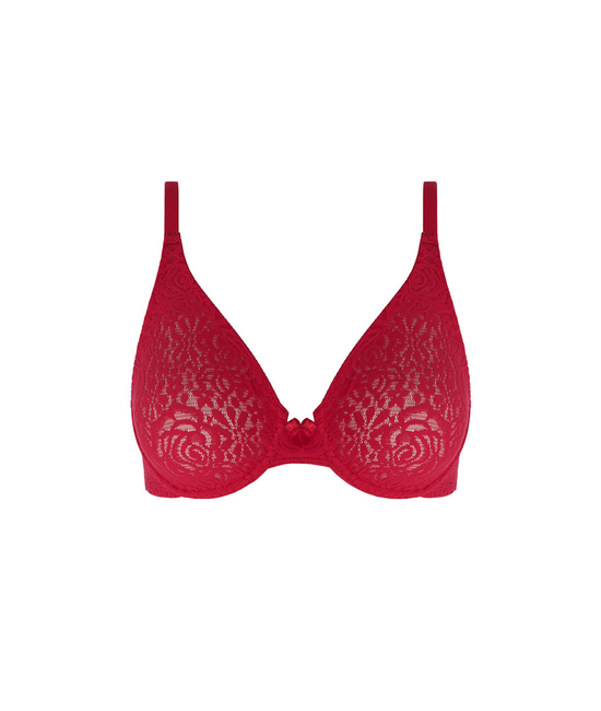 Halo Lace, een onmisbare lingerielade, is de perfecte collectie voor dagelijks gebruik. Deze collectie is gemaakt van een superzachte Helenca-bloemenkant met stretch en biedt compromisloos comfort en ondersteuning zonder in te boeten aan stijl. Verkrijgbaar in Lipstick Red.