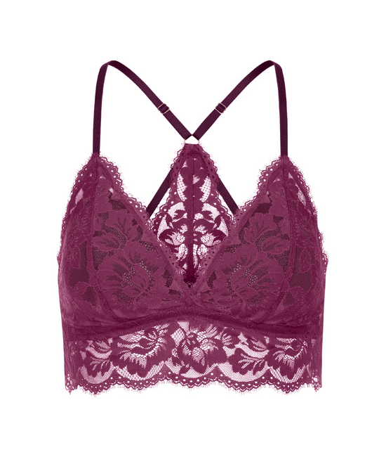 - Bralette - Met vulling - Zonder beugel - Gekruiste schouderbandjes - Verstelbare schouderbandjes - Zachte, kanten omtrekband - Kant met bloemenmotief
