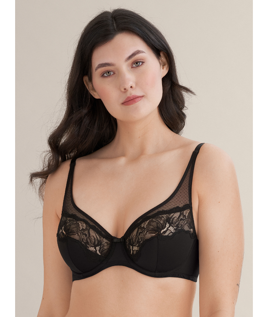 - Plunge beha - Lichte doorstikte mousse - Met beugel - Verstelbare schouderbandjes - Haak- en oogsluiting, drievoudig verstelbaar