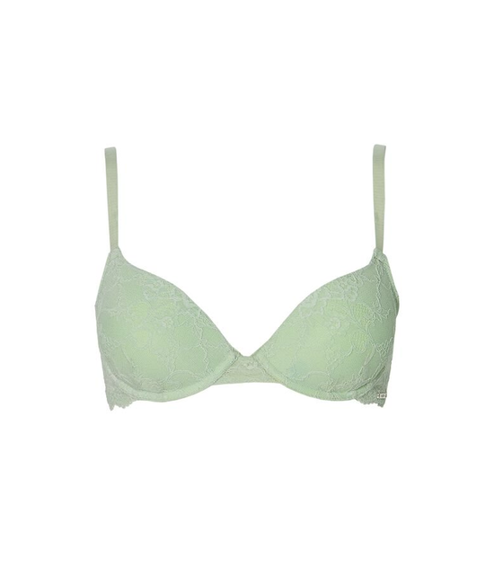 De push-up thalia is grotendeels gemaakt van kant. Het is een mooi grof bloemenkant. De kleur is mintgroen, een lekker fris kleurtje die opvalt! . Ook de schouderbandjes zijn sierlijk. De BH combineert perfect met de gelijknamige brazilian. •Push-up bh •Grotendeels kant •Mintgroen