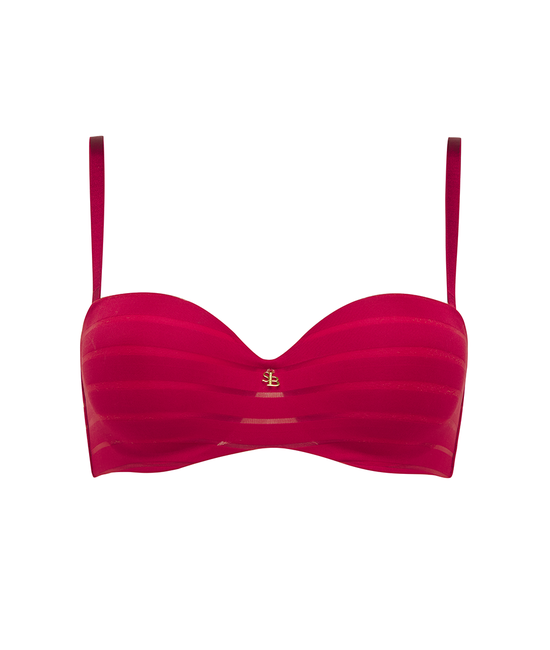 De Michelle strapless balconette BH heeft een sexy rode kleur. De cups en de zijkanten zijn gemaakt van rode microstof met transparante strepen. Deze stof is erg zacht, wat de BH erg comfortabel maakt. De schouderbandjes zijn afneembaar, waardoor de BH strapless te dragen is. Er zit geen rubberen of silicone strip in deze BH, waardoor irritatie van de huid vermeden wordt. De zijkanten van de BH zijn daarom speciaal van extra stevig stretchmateriaal gemaakt. Hierdoor blijft de BH zonder bandjes toch goed op zijn plek zitten, ook bij de grotere cupmaten! Deze comfortabele strapless BH is een perfecte aanvulling aan je collectie! Dankzij de afneembare schouderbandjes is deze BH perfect om te dragen onder een strapless top