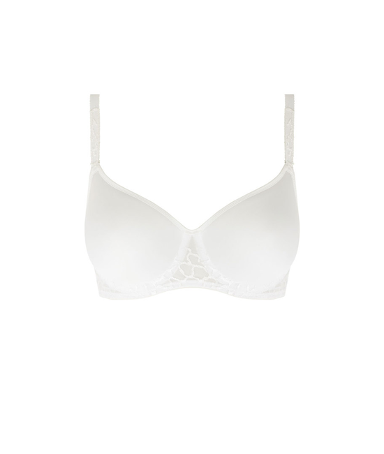 Een klassieker, de Lisse van Wacoal in tijdloos wit. Deze zachte, ultracomfortabele collectie is gemaakt van katoen en haalt zijn inspiratie uit de natuur en haar authentieke schoonheid. Het Zwitserse borduursel rust op een gaasgrond en bootst koraal en de delicate reflecties van rimpelingen op het water na. De BH heeft spacer cups. Deze luchtdoorlatende cups zijn ideaal bij warm weer. Het is hierdoor een ideale t-shirt BH. Let wel op. Bij dames met een zwaardere tepel, kan deze zichtbaar zijn door de stof. Draag dan een tepelpad.