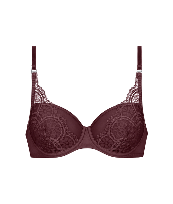 - Halve Cup BH - Voorgevormde cup (spacer-stof) - Innovatie: ademend en superlicht - Met beugel - Cup en rug deels versierd met kant - Verstelbare bandjes - Haak- en oogsluiting, drievoudig verstelbaar