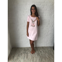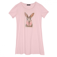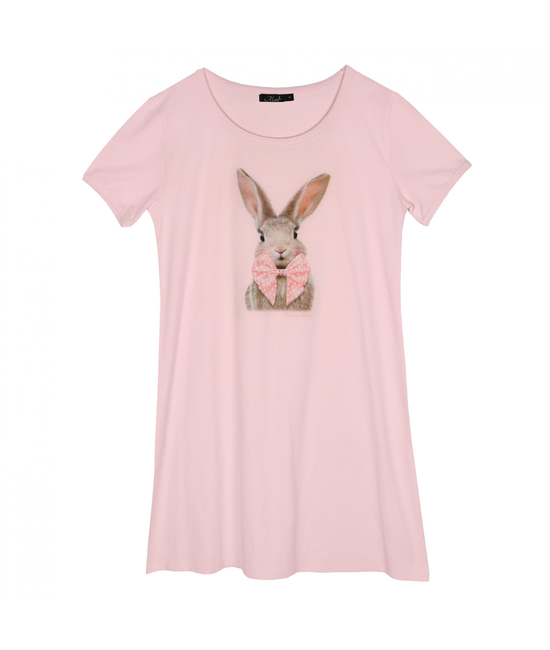 Roze katoenen nachtkleedje met konijnenprint.