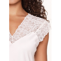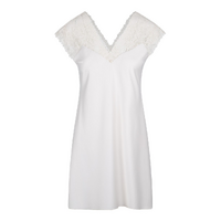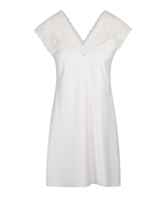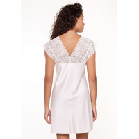 - Nachtjurk tot boven de knie - Cap-mouw - Transparant op de schouders - V-hals voor en achteraan - 100% Polyester