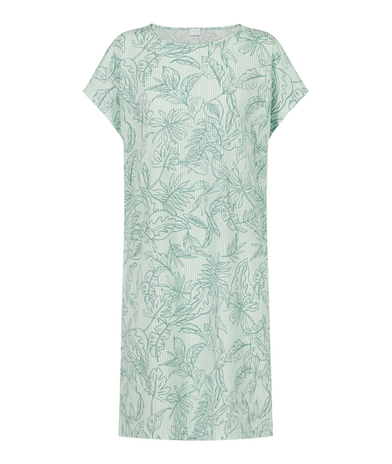 - Casual snit - Korte, schuine mouw - Bladprint in mint - 100% katoen - Knie lengte