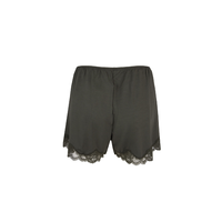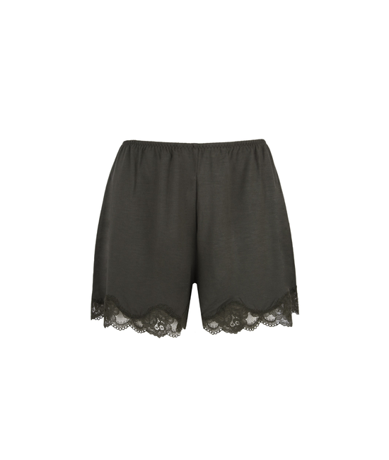 - Halflange short - Elastiek in taille - Afgewerkt aan billen met kanten zoom