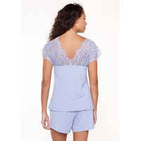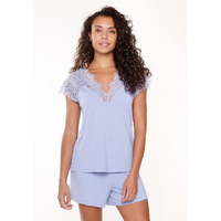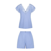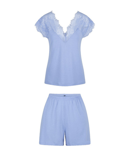 - Pyjama set met short - Kanten boord aan de V-hals - Lengte short: 10 cm boven de knie